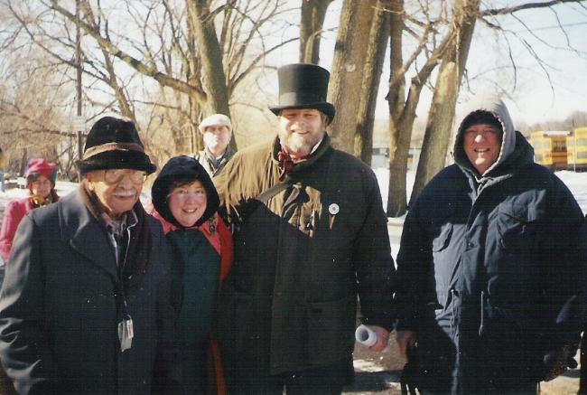 and a picture of Fred (second from left) at a celebration of the 100th birthday of