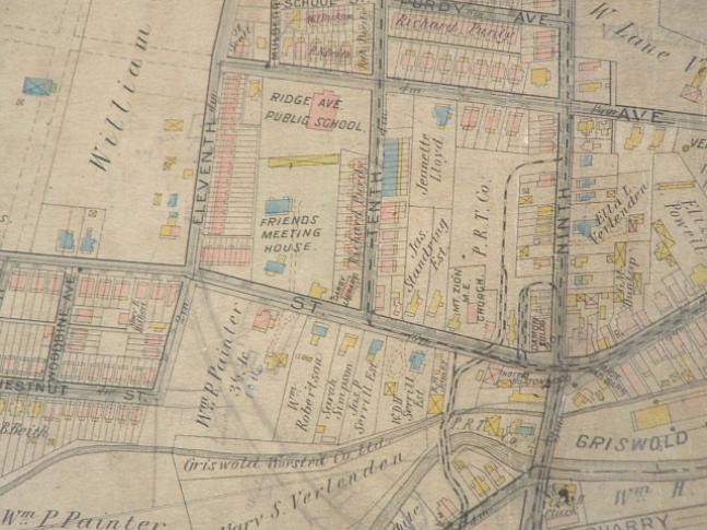 1909 Atlas Map of Darby showing trolleytracks going on to Ninth Street across