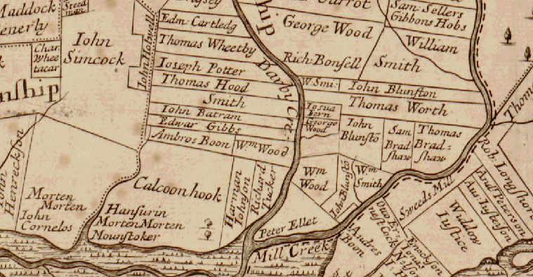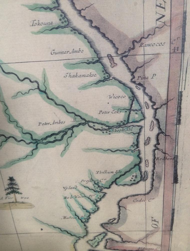 Map showing the landscape before Penn's arrival. (1681) Look at the settlement at Tenikum Isle