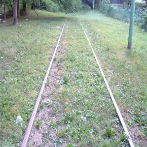 showing still existing rails and caternary